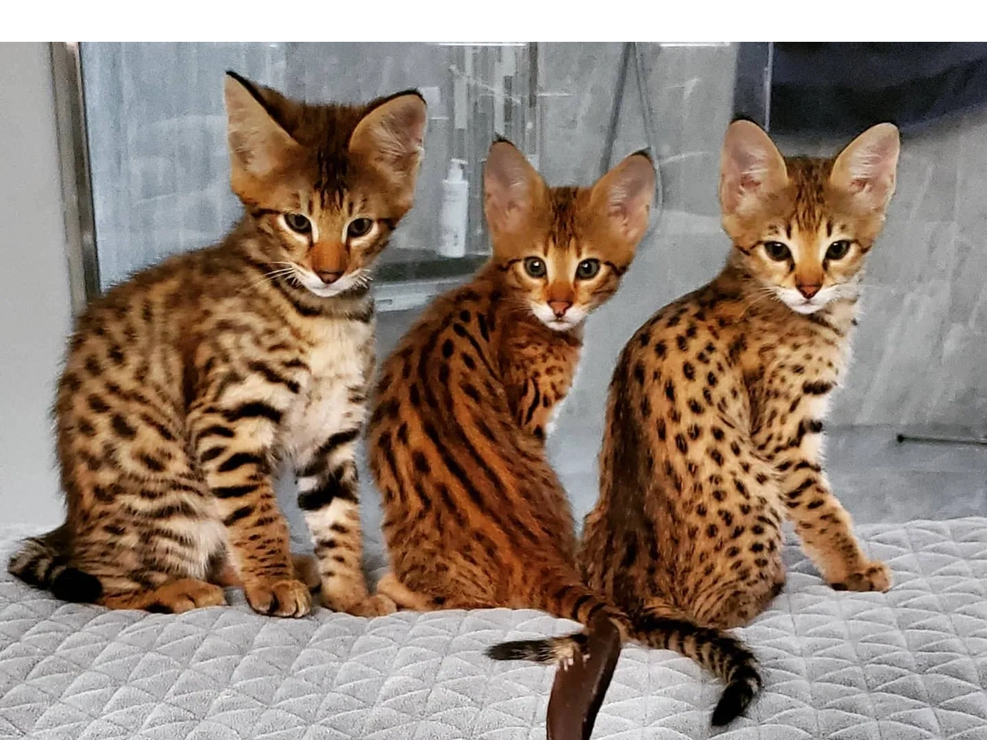 All of our cats are raised in our home with our 2 children. They love being held and you can expect them to want to sleep with you most likely under the covers. We specializes in producing stunning looking F1 F2 Savannah kittens with a wild serval-look bold black spots and a striking coat.